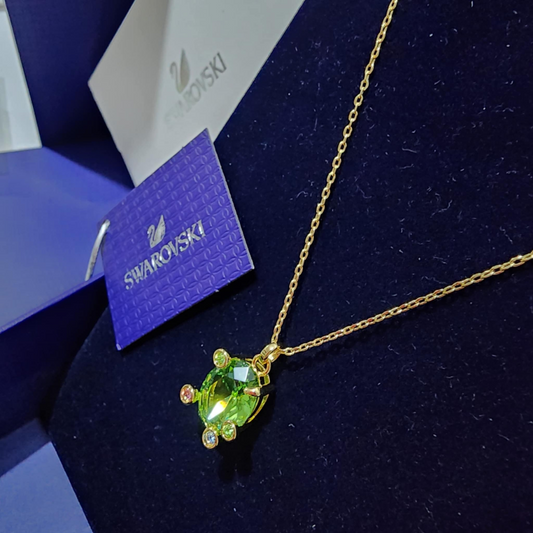 SWAROVSKI GEM PENDANT NECKLACE MIXED SIZES MULTI COLOR GOLD CRYSTALS GOLD