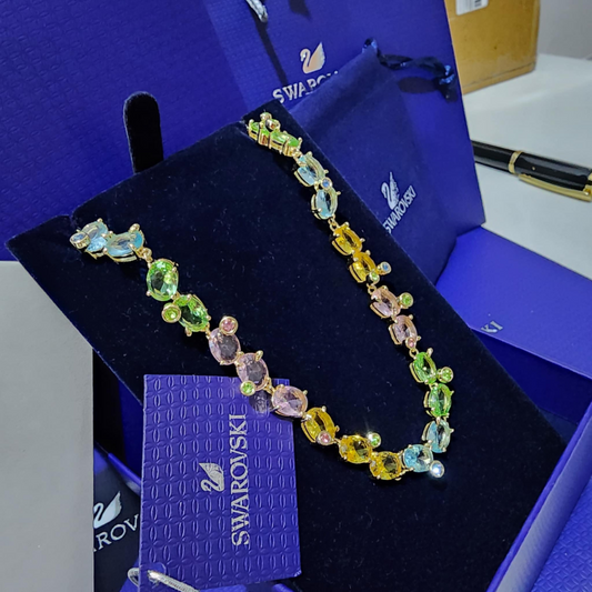 FULL MULTI-COLOR SWAROVSKI YELLOW GOLD CRYSTAL GEM NECKLACE + GIFT KIT