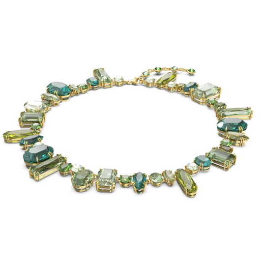 GEM NECKLACE WITH FULL MULTI-COLOR SWAROVSKI GREEN CRYSTALS + GIFT KIT