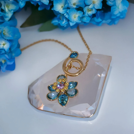 SWAROVSKI FLORERE IDYLLIA FLOWER PENDANT NECKLACE BLUE GOLD CRYSTALS + GIFT KIT