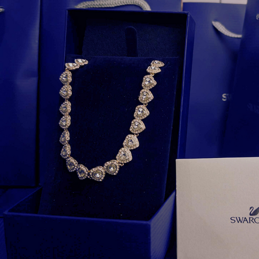 SWAROVSKI GOLD TENNIS NECKLACE WITH WHITE HEARTS AND ARIANA GRANDE + GIFT KIT