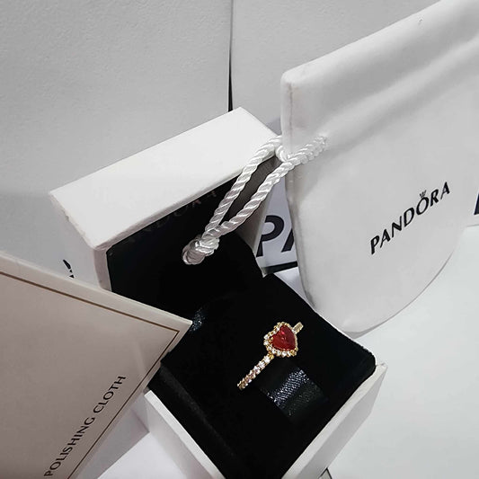 PANDORA PROMISE RING RAISED HEART RED GOLD GOLD + GIFT KIT