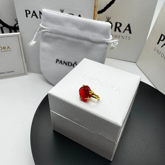 CHARM PANDORA COLGANTE ROSA ENCANTADA ROJA DISNEY BELLA Y BESTIA ORO 14K