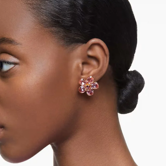 14K GOLD FLORERE FLOWER EARRINGS WITH PINK SWAROVSKI CRYSTALS + GIFT KIT