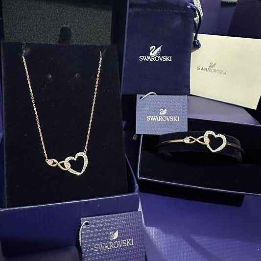 SWAROVSKI INFINITY HEART NECKLACE AND BRACELET SET ROSE GOLD
