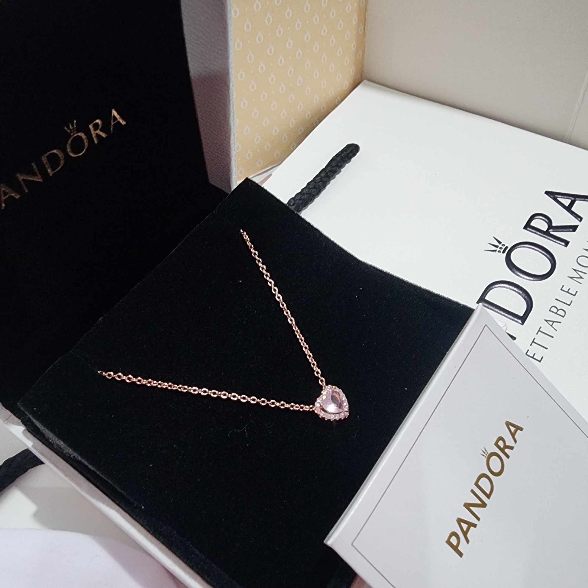 PANDORA ROSE GOLD RAISED HEART NECKLACE PINK + GIFT KIT