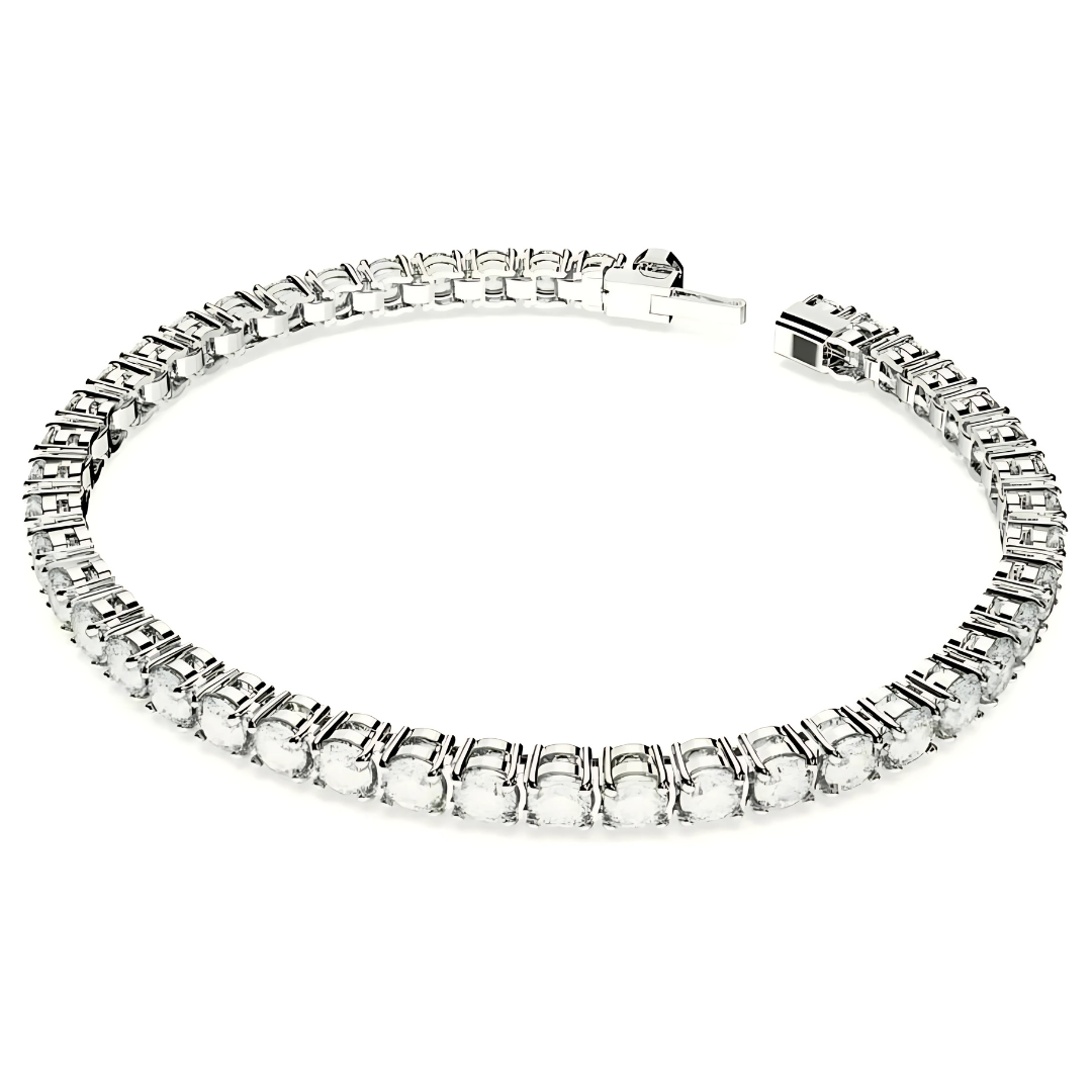The sophisticated Swarovski Matrix Tennis Bracelet is crafted with clear crystals crowned with silver-tone hardware. Each crystal beautifully reflects the light, making the Matrix Tennis Bracelet a real eye-catcher. Wear it alone or layer it with other Swarovski crystal jewelry. It measures 16.5 cm and features a convenient spring clasp.