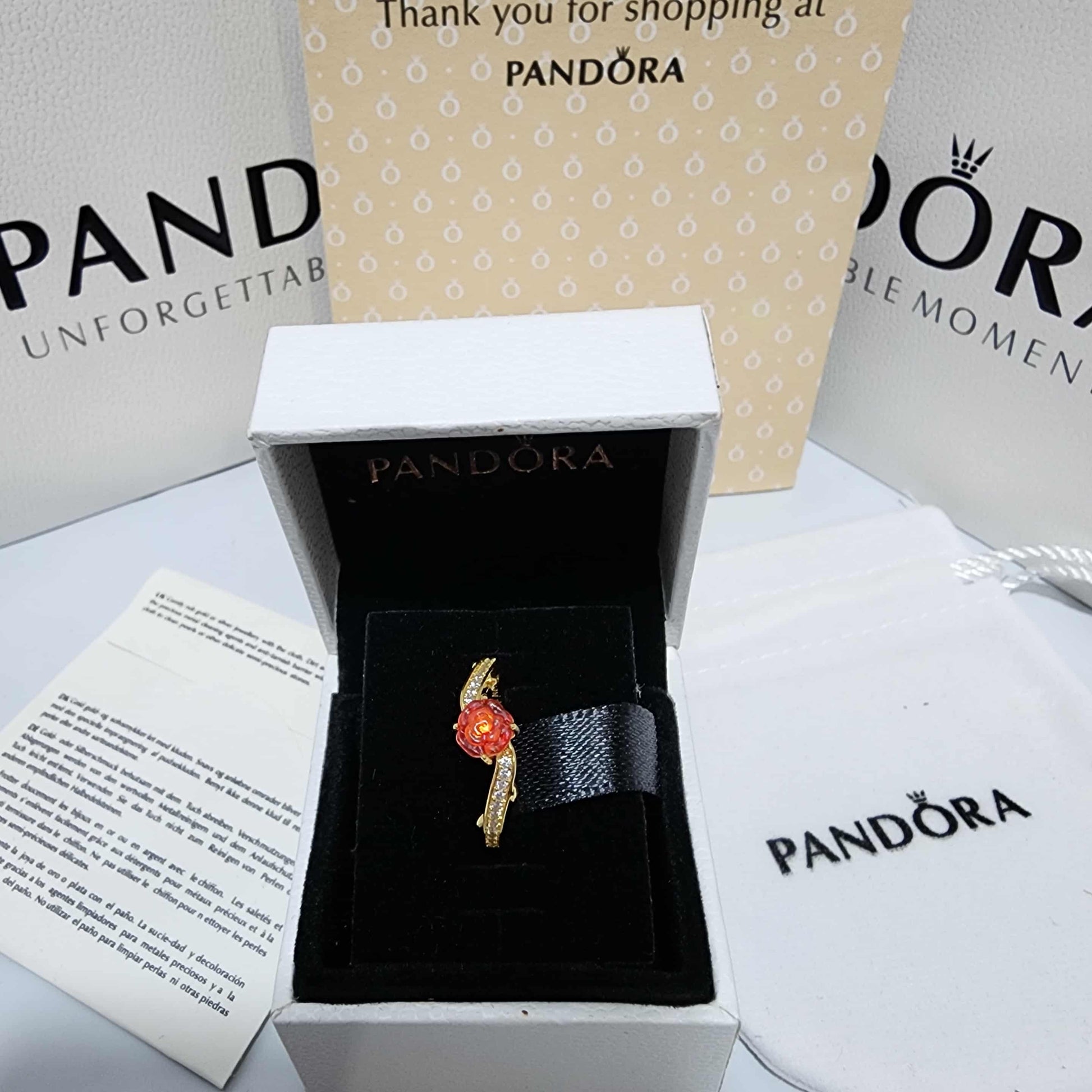 ANILLO PANDORA PINCESA DISNEY BELLA Y LA BESTIA ROSA ENCANTADA ORO 14K