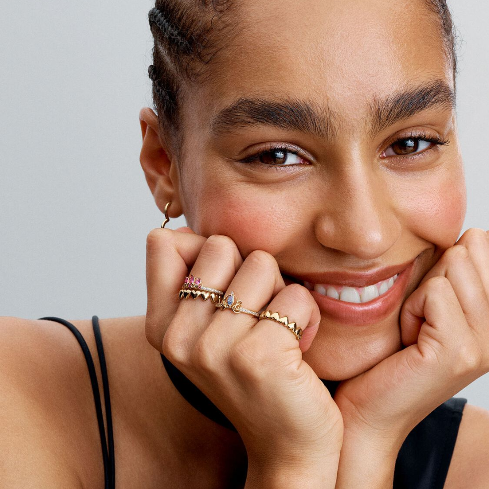 Inspirado en Rapunzel de Disney, este anillo en forma de tiara tiene brillantes piedras en forma de pera de color púrpura claro y detalles en espiral. Llévalo contigo para encarnar el valor, la creatividad y el espíritu aventurero de Rapunzel.